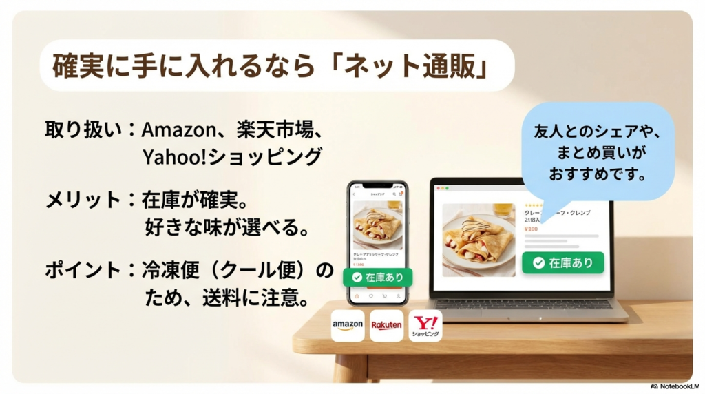 フレンズクレープを確実に手に入れたいなら、通販の利用が最もおすすめです。